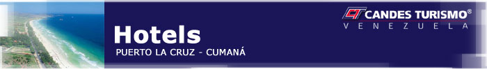 Maremares Location: Maremares is located at El Morro Tourist Complex, in Puerto La Cruz, the most recently developed area in the Caribbean, a few minutes away from Barcelonas International Airport and close to the citys shopping centers and night spots. Its grand swimming-pool, marina and golf course are harmoniously integrated to lavishly beautiful surroundings, in a unique Caribbean ambiance. Services and Facilities Its 500 deluxe suites with a view to the marina, the water channels and the golf course are just ideal for relaxation. Convention facilities, congresses, incentive programs, workshops and social events up to 1200 pax-12 rooms. Three restaurants, two bars where you can have a taste of international cuisine. 24 hours room service. Giant 3.000 sp.meters swimming-pool with cascade, waves, hanging bride in a setting that can be both pleasant and thrilling, to meet everybodys taste in the family. Private marina with all the facilities, with a 50-boat capacity Water sports and rides to the channels. International multi-purpose spa with modern conveniences: spinning, jacuzzy, aerobics, sauna, steam room and two racquetball courses in the premises. 9-hole golf course. A center with recreational activities designed for children entertainment Puerto La Cruz Edo.Anzoátegui Phone: 0281-2811011 Gran hotel Puerto La Cruz Location Situated in the Bahia de Pozuelos at 25 minutes from the airport with the Ocean view is ideal for the turist passenger and the bussines men. Services and Facilities 220 Rooms and 20 suites with Ocean view Minibar Air conditioned. Direct phones fax and internet. Safe Box. 3 Restaurants and 2 Bars. Room Services Businnes Center. Pool for adults and children Laundry Conference Room. Beauty Saloon. Shops. Fitness Center. Sports. Tennis Court. Recreation activities. Taxi. Final Paseo Colon - Puerto La Cruz Phone: 0281- 5003611 Cumanagoto Location Situated in one of the most beautiful landscape of the Caribbean, the city of Cumaná, on the Venezuela coast, one our flight from Caracas, a few minutes from Mochima National Park. Services and Facilities 163 Rooms with Ocean view or Golf course view. Air conditioned. Direct phones fax and internet. Safe Box. Restaurants. Businnes Center. Conference Room. Beauty Saloon. Shops. Bank Spa and Fitness Center. Sports. Tennis Court. 9 Holes illuminated Golf Course. Acuatic activities Playa San Luis, Final Av. Universidad. Cumaná - Edo.Sucre Phone: (58) 933011400 <-Return to Hotels |